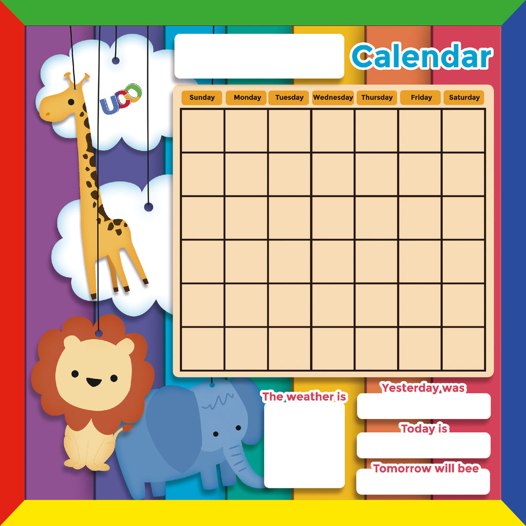 Contains: Magnetic board, cards in English with the 7 days of the week, 12 months, the numbers from 1 to 31, 3 weather seasons.
